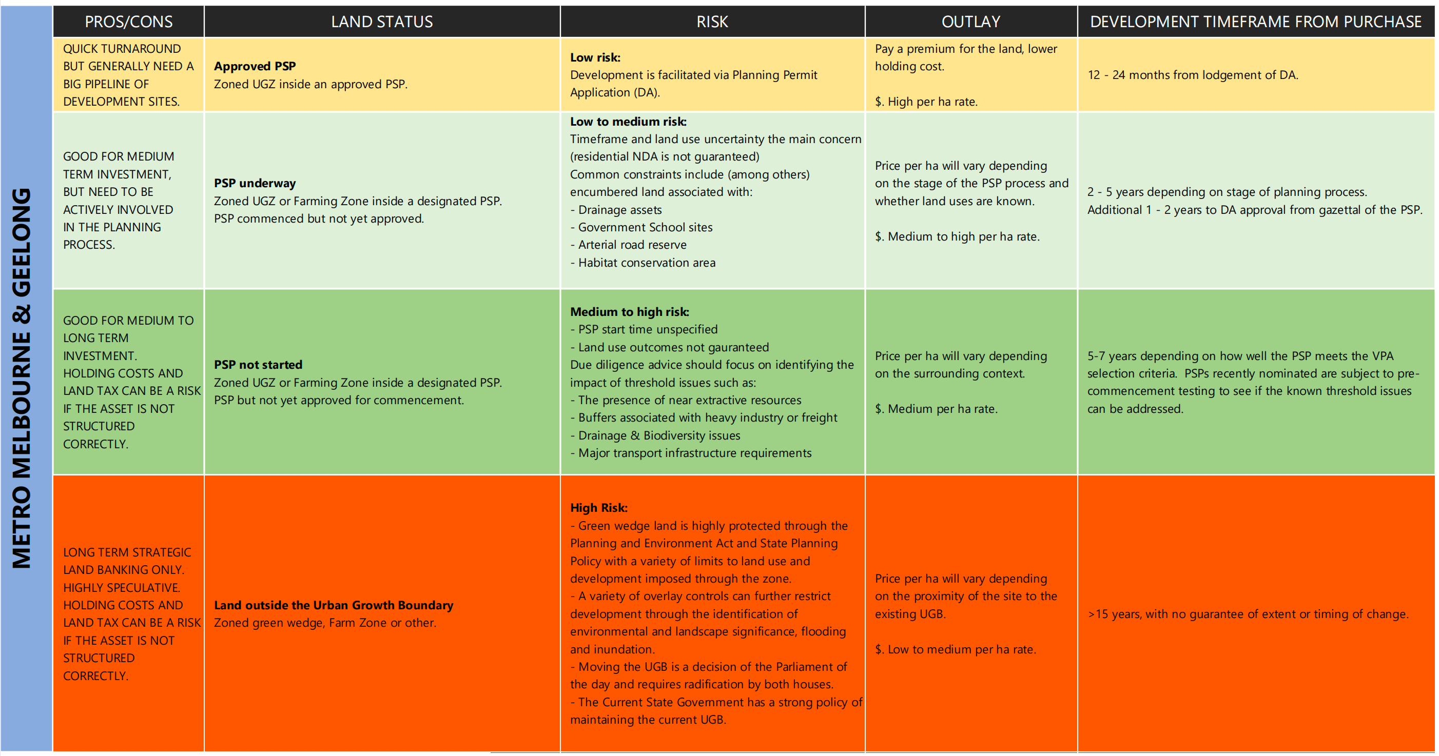 Breton Fleming: “PSPs underway lands carry low to moderate risk, suitable for medium-term investment, but they require active involvement in the planning process.” (Source: Urbis)