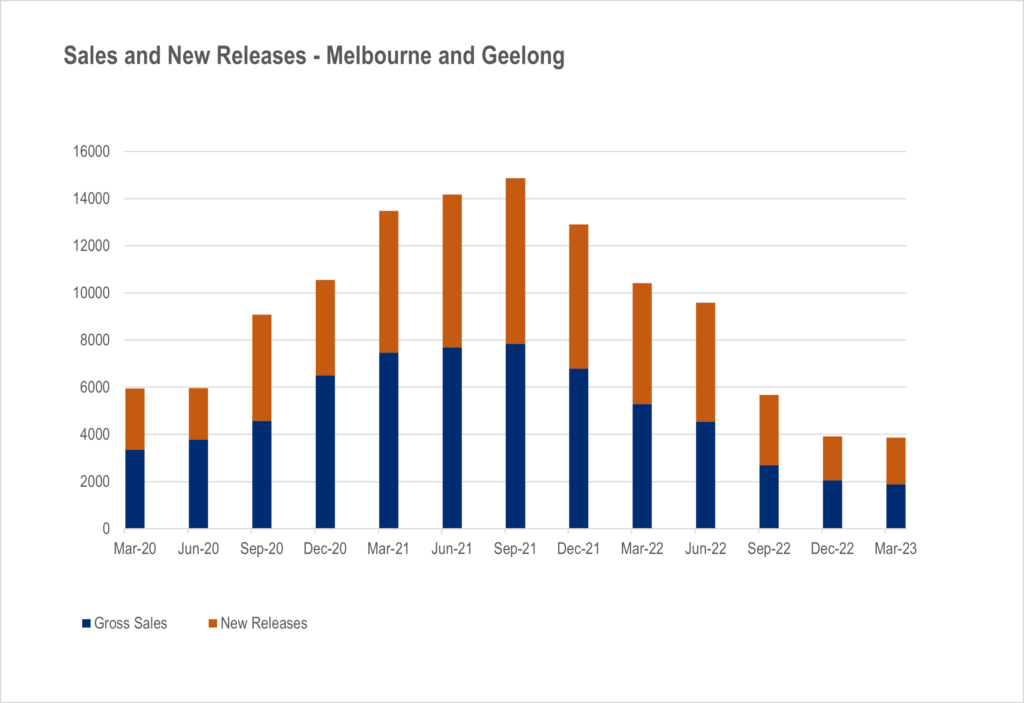 Sales activity across the Melbourne and Geelong growth areas recorded 1,879 lots over Q1 this year, deceased 9% from the previous quarter and two thirds lower than the same time last year, to the lowest record in the recent three years. Borrowing capacity continues to deteriorate as a result of the tenth consecutive rise to the cash rate in March, which has now lifted by a cumulative 350 basis points since the middle of 2022. Purchaser confidence remains heavily constrained, despite the growing incidence of incentives trying to entice purchasers to enter the new home market.