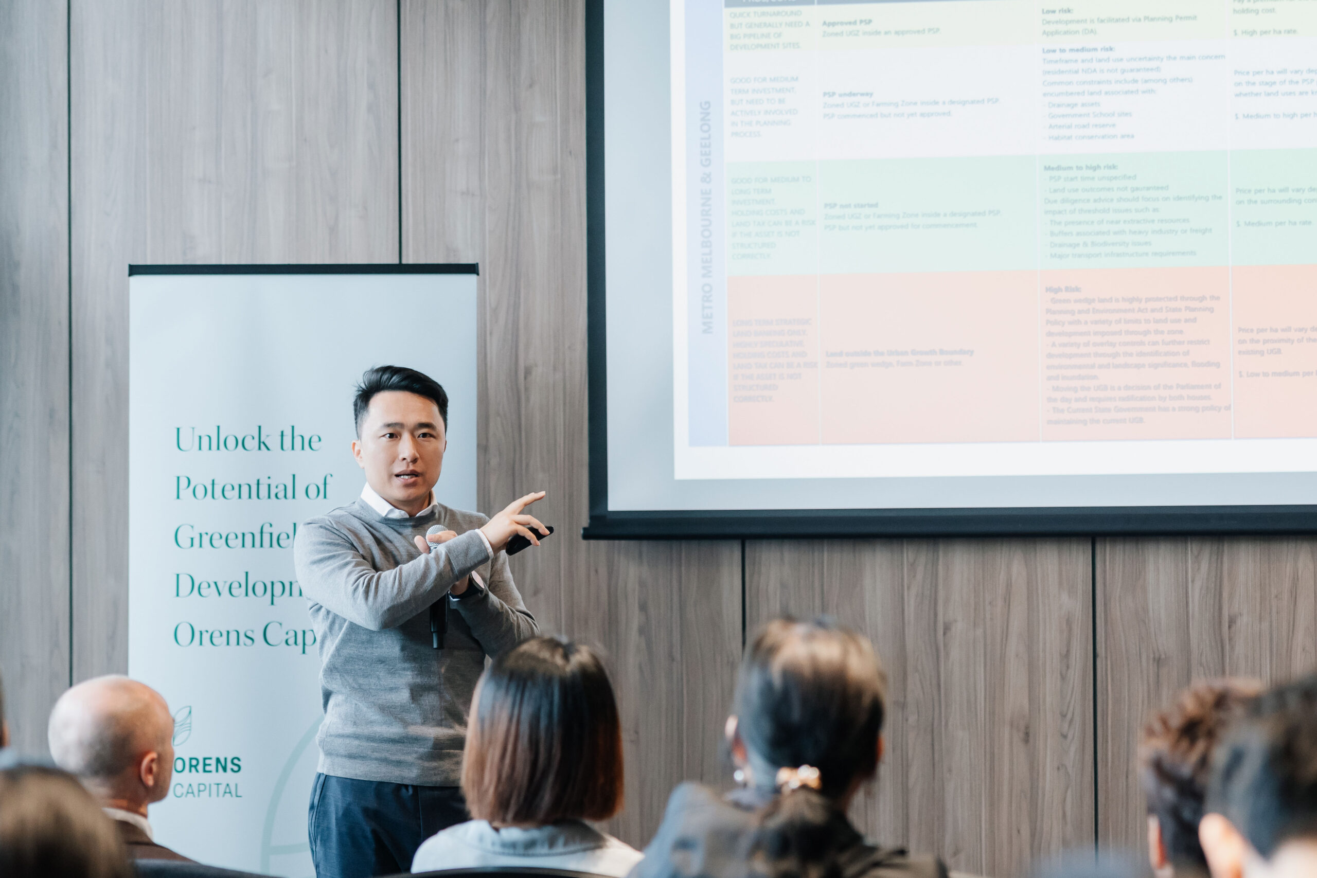 Special thanks to our keynote speakers, Bret Fleming, Director of Urbis, and Jimmy Zhang, Co-founder and CEO of Orens Capital. They shared valuable insights into Victorian planning policies and the ongoing trends in greenfield development, highlighting Melbourne’s growth areas as one of the strongest and most highly sought-after investment sectors in Australia. Despite the intense competition for developable greenfield land, significant opportunities remain to acquire strategic landholdings within the Melbourne Urban Growth Boundary.